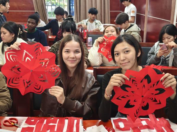 来自吉尔吉斯斯坦的留学生艾达娜兴奋地表示:“这是我第一次接触中国剪纸,太神奇了!老师的讲解让我明白了剪纸背后的文化意义,我也非常喜欢动手创作的过程。”